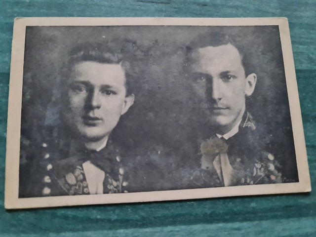 první byl učitel a vynikající dudák, druhý úředník, doprovázel jej na housle, podpisy na rubu + další foto