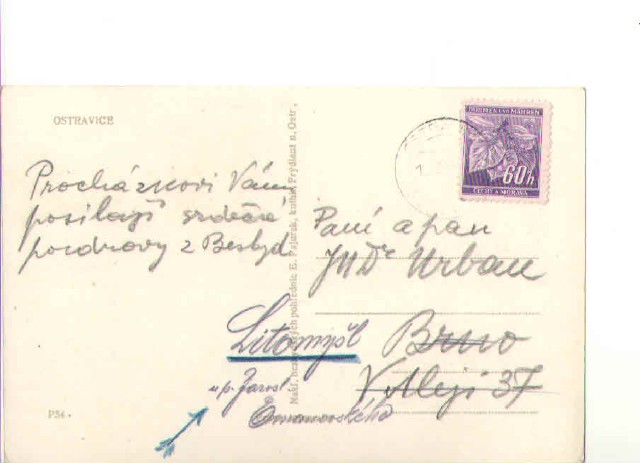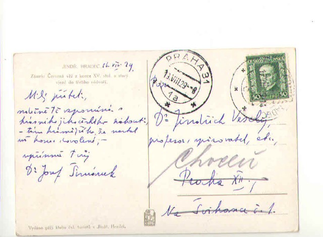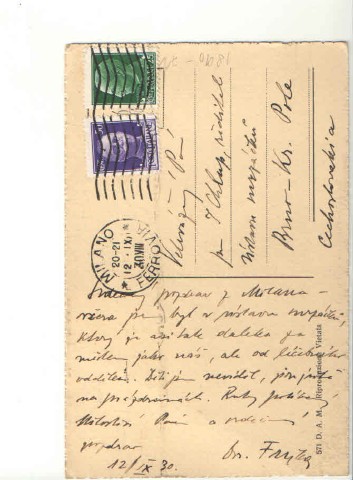 Oba podpisy na pohlednici z Benátek adresované rektoru AVU Janu Štursovi