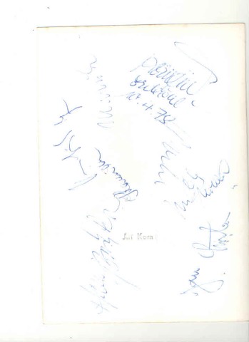 foto s podpisy jeho a hudebníků vystupujících v jeho programu, mj. doprovodný zpěv Hana Buštíková (1950)